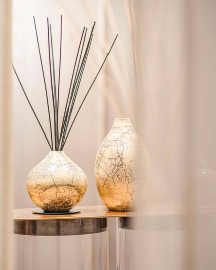 Limitowana edycja włoskich dyfuzorów, stworzona w oparciu o starożytną technikę Raku. To coś więcej niż zapach do domu — to żywe dzieło sztuki, zrodzone z natury i pasji mistrza.
