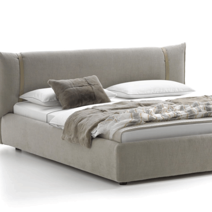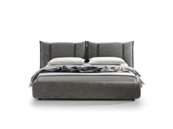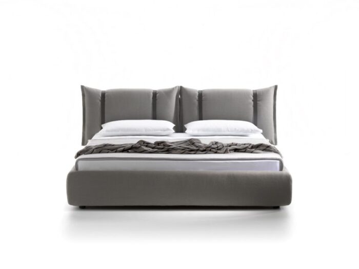 Łóżko Avedon dostępne jest w dwóch wersjach zagłówka — z jedną dużą poduszką lub z dwiema oddzielnymi, które mogą być wyposażone w skórzane paski lub pozostać bez nich. Wszystkie elementy można zamówić w pełnej gamie tkanin i kolorów z kolekcji Ivano Redaelli.