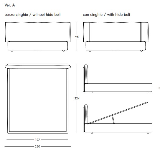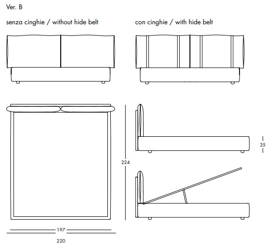 Pokrowiec zdejmowany, dostępny w tkaninach z kolekcji Ivano Redaelli, z paskami skórzanymi lub bez nich.