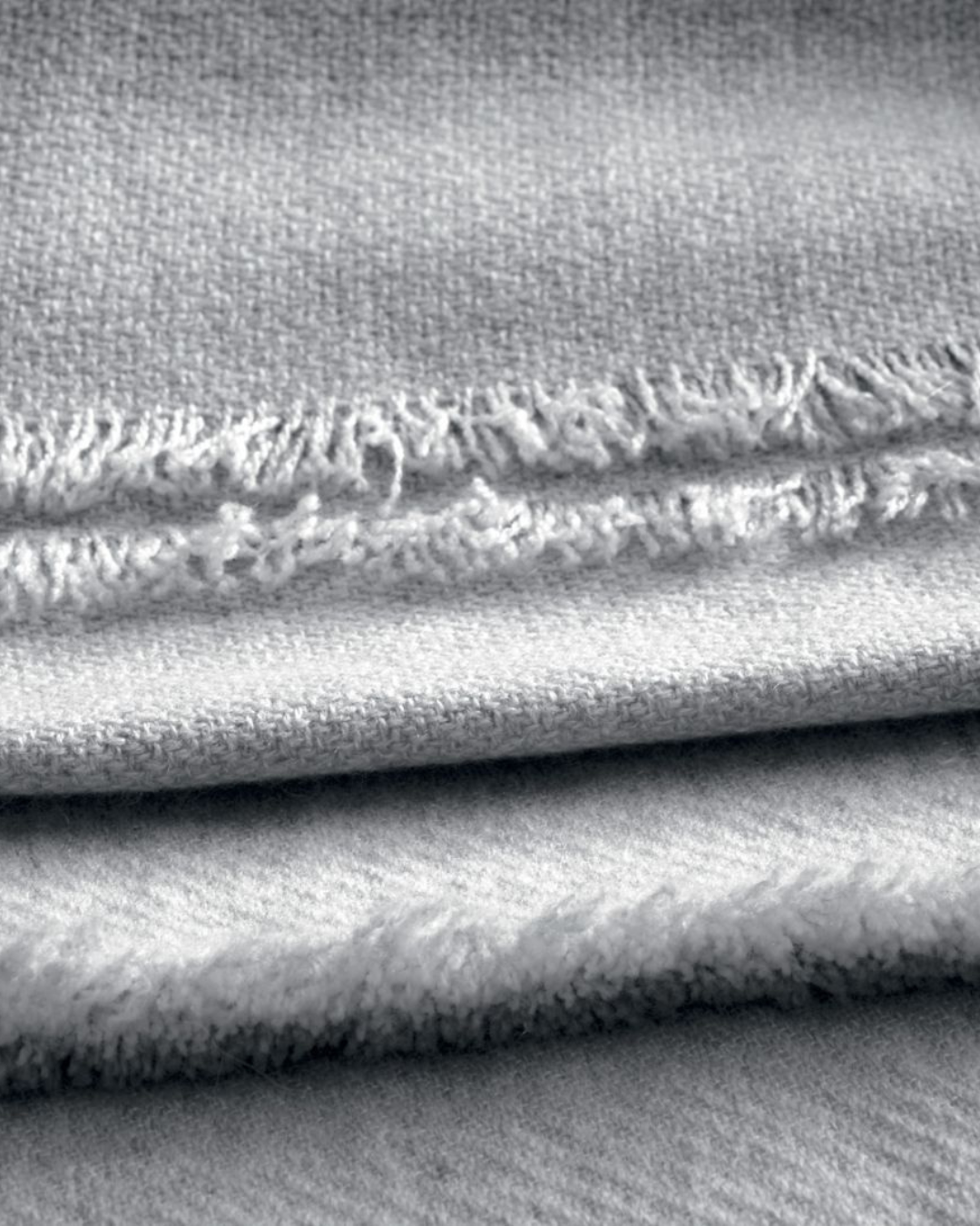 Koc Class wykonany z najwyższej jakości kaszmiru, który nadaje łóżku wyjątkowej elegancji i obecności. Tkany ręcznie na krośnie z zastosowaniem zaawansowanej wiedzy rzemieślniczej, charakteryzuje się subtelnym efektem melange typowym dla kaszmiru w gamie wyrafinowanych kolorów. Brzeg ozdobiony frędzlami również wykonany ręcznie, dodając całości luksusowego i wyrafinowanego charakteru.