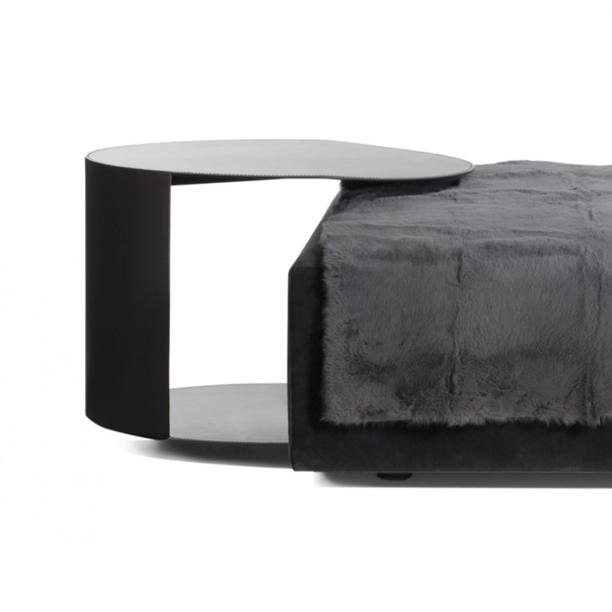 Stolik Clip to wyjątkowy przykład włoskiego designu, łączący elegancję, funkcjonalność i luksusowe wykończenie. Zaprojektowany jako uzupełnienie łóżka Glamour, idealnie dopasowuje się do jego formy, tworząc spójną i stylową całość. Dzięki swojej konstrukcji może obracać się wokół łóżka lub funkcjonować jako samodzielny stolik nocny.