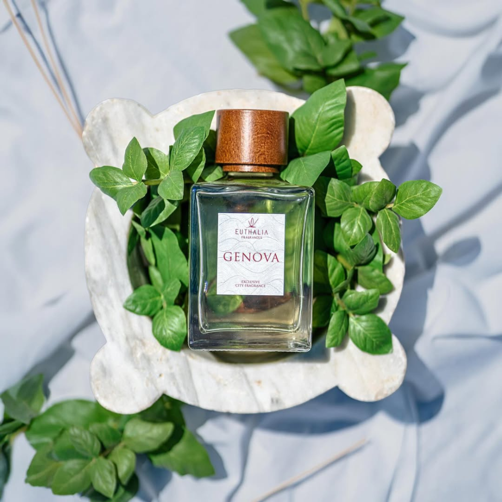 Bazylia, symbol Genui, gra tu główną rolę, towarzysząc energetyzującym nutom mięty, eukaliptusa, pomarańczy i bergamotki.