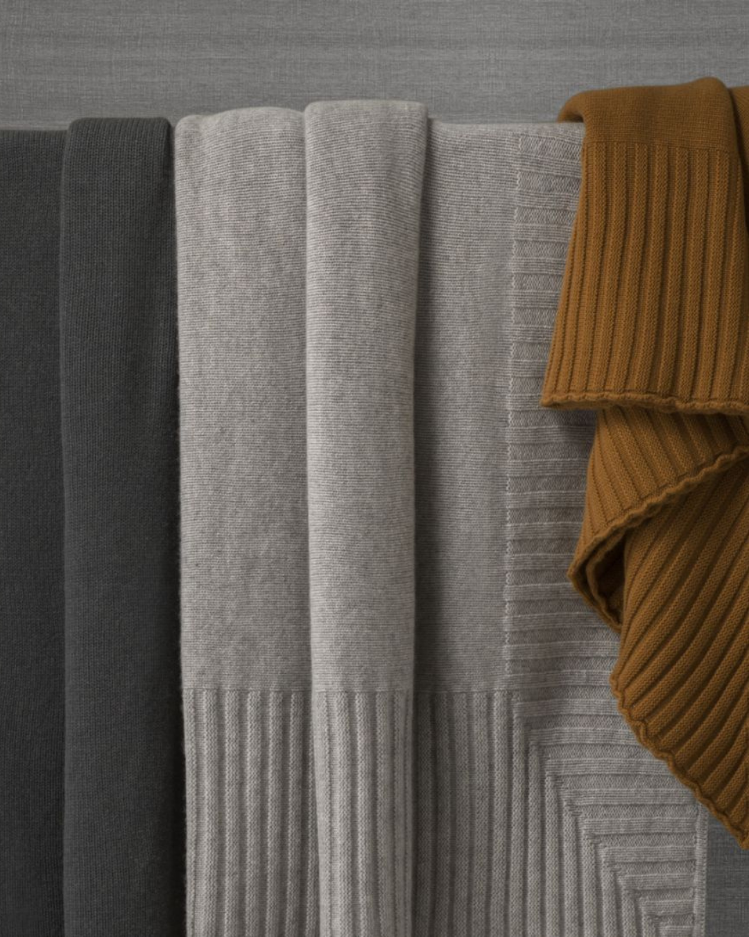Pled wykonany z najczystszego, wyjątkowo miękkiego kaszmiru w technice tricot zachwyca subtelną prostotą i wyrafinowaniem. Charakterystyczny, wysoki ściągacz tworzy efektowny kontrast z gładką dzianiną, nadając całości luksusowego, nowoczesnego charakteru.