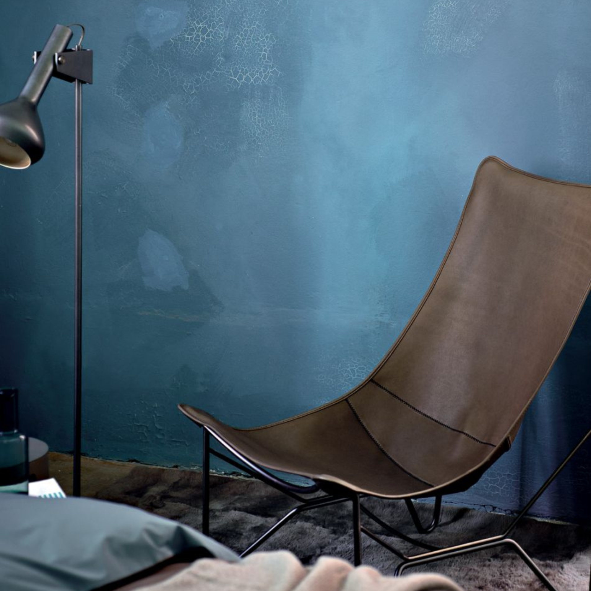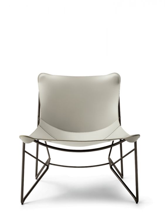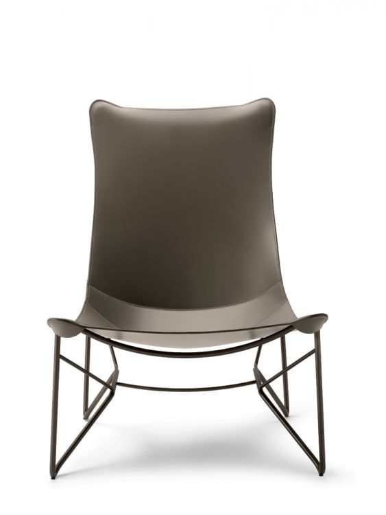 Model dostępny jest w dwóch wersjach — z niskim lub wysokim oparciem — co pozwala idealnie dopasować go do charakteru wnętrza. Konstrukcję tworzy rama z brązowanego metalu, na której osadzono tapicerkę z najwyższej jakości licowej skóry i skóry naturalnej. Elementy skórzane mocowane są za pomocą specjalnie zaprojektowanych kieszeni, podkreślających rzemieślniczą precyzję i unikalny styl kolekcji.