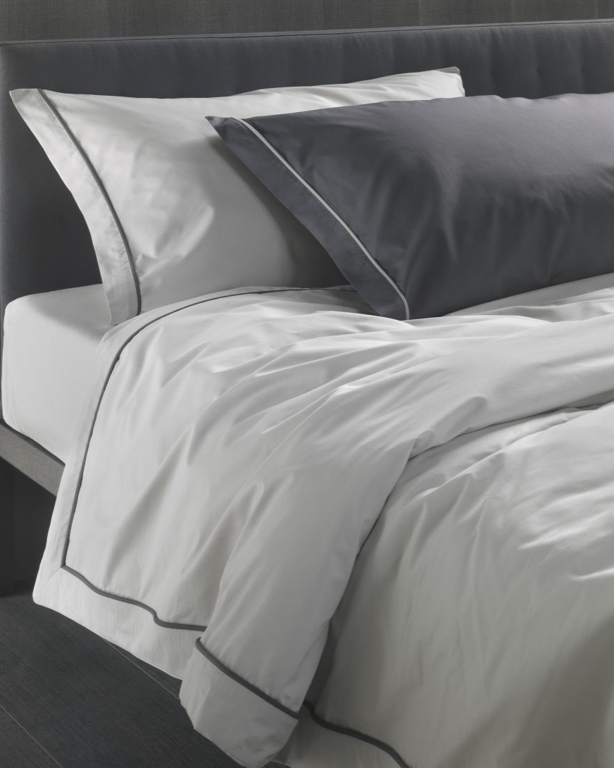 Poszwa na kołdrę – model sacco z lamówką naszytą po 3 stronach wewnętrznych, otwarcie od dołu ułatwiające włożenie wkładu