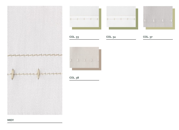 Haft Midy pojawia się również w kolekcji łazienkowej Lim, tworząc harmonijne połączenie stylu i ciągłość estetyki między sypialnią a łazienką.