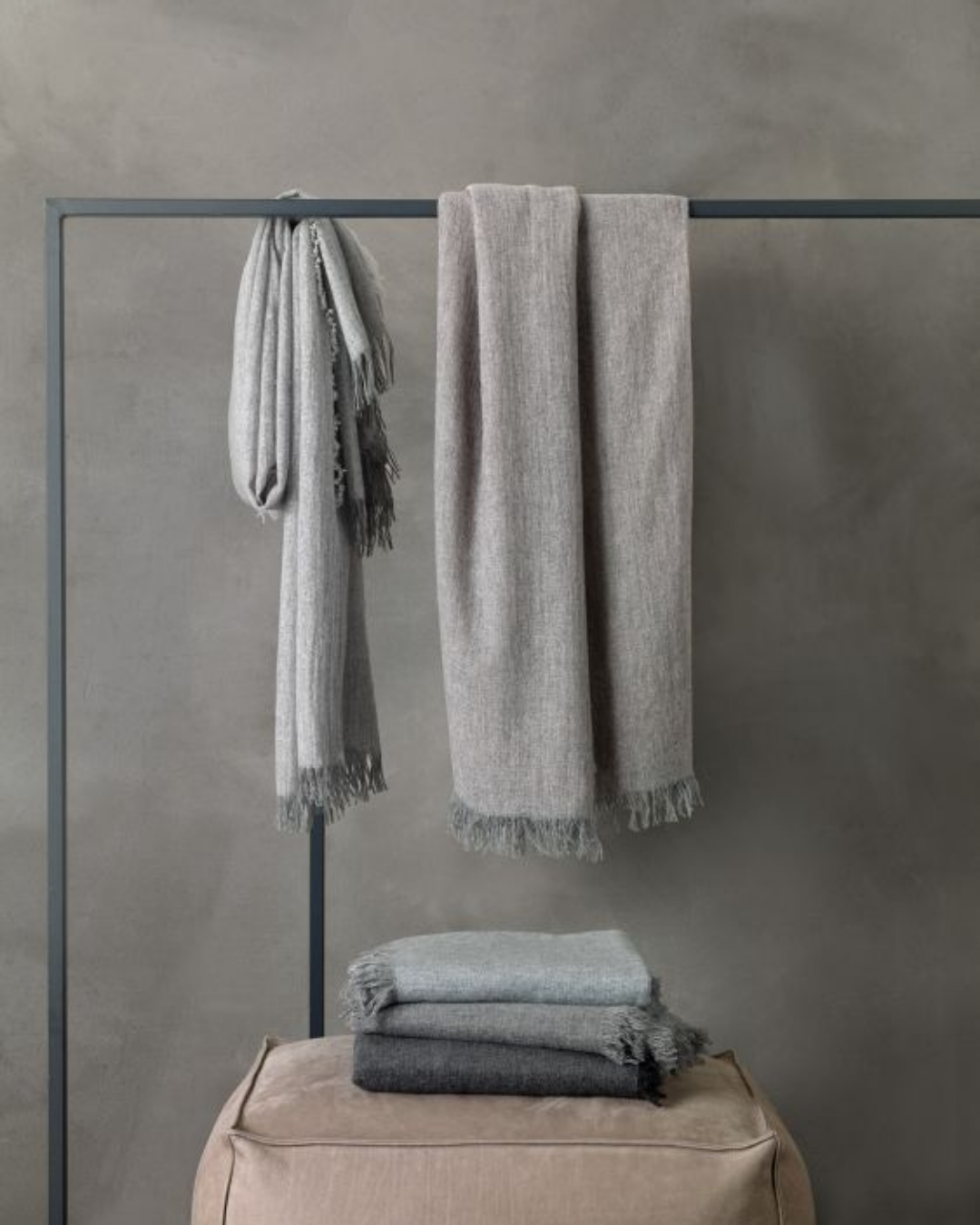 Najczystszy kaszmir w subtelnych kolorach mélangé tworzy niepowtarzalny pled, który wprowadza odrobinę elegancji do każdego wnętrza. Idealny jako okrycie na krzesła podczas letniej kolacji, miękki szal podczas rejsu jachtem lub podróży samolotem, a także jako otulający koc do relaksującego wieczoru na sofie.