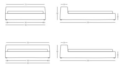 Konstrukcja łóżka wykonana z drewna. Wypełnienie z nieodkształcalnej pianki poliuretanowej połączonej z aksamitem, zapewniającej wyjątkowy komfort. Tapicerka dostępna w wersji z tkaniny lub skóry naturalnej, w pełni zdejmowana dla łatwego czyszczenia.