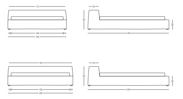 Konstrukcja łóżka wykonana z drewna. Wypełnienie z nieodkształcalnej pianki poliuretanowej połączonej z aksamitem, zapewniającej wyjątkowy komfort. Tapicerka dostępna w wersji z tkaniny lub skóry naturalnej, w pełni zdejmowana dla łatwego czyszczenia.