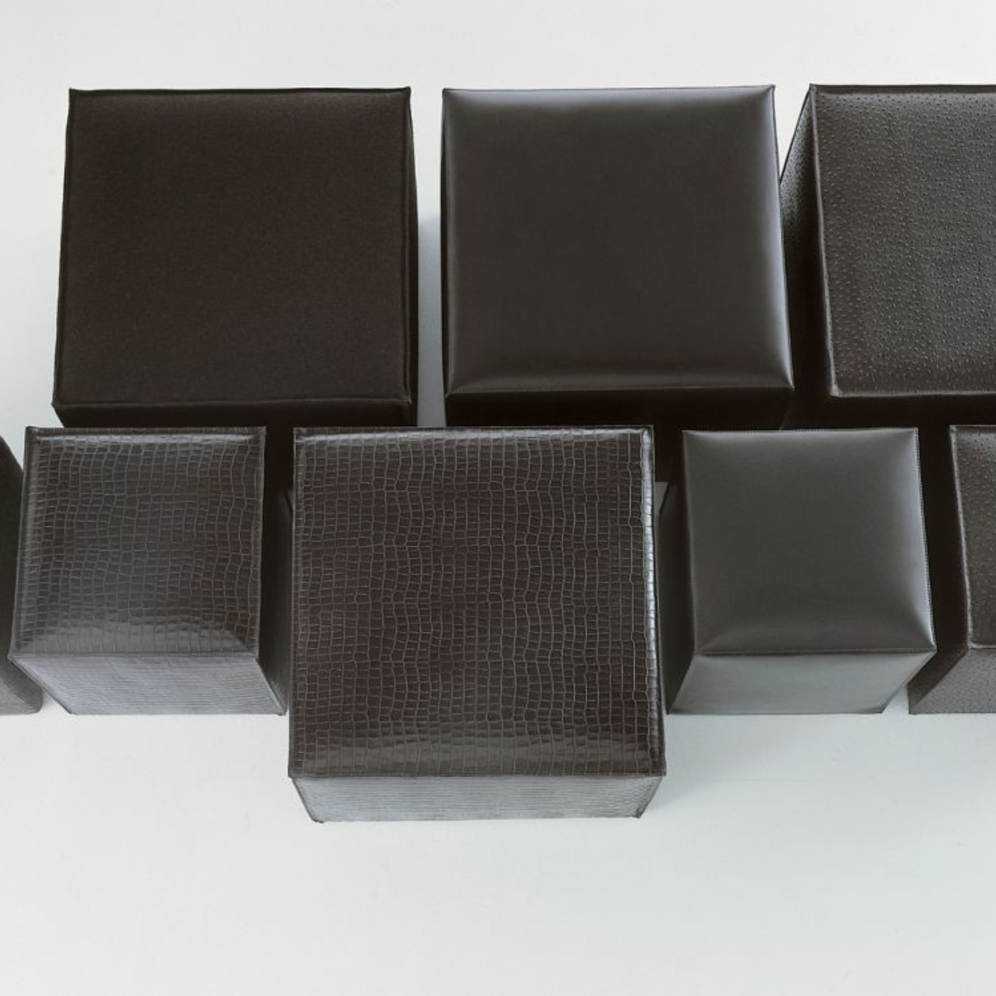 Pufy o różnych kształtach i rozmiarach, wykonane z najwyższej jakości skóry, zamszu lub tkanin, łączą w sobie elegancję i wszechstronność. Ich minimalistyczna, liniowa forma sprawia, że doskonale komponują się zarówno w salonie jako dodatkowe siedziska, jak i w sypialni — np. w zestawieniu z toaletką lub biurkiem. Modele w rozmiarach XS i XL wnoszą do wnętrza styl, funkcjonalność i włoski szyk w najczystszej postaci.