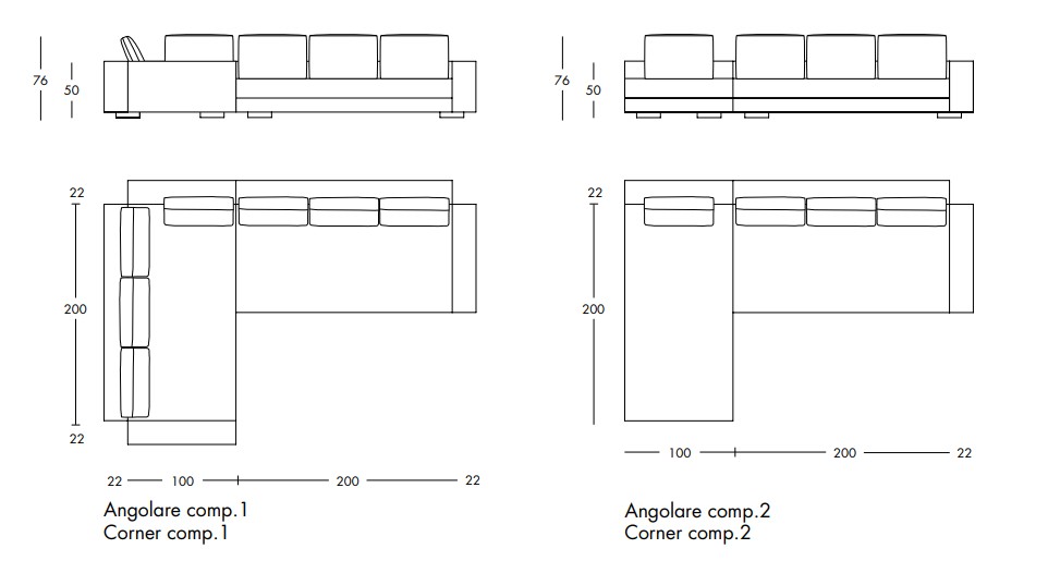 • Mod. 1: 60 × 45 × 10/17 cm, pianka poliuretanowa, wypełnienie 100% puch gęsi