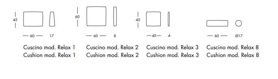 • Mod. 5: 45 × 45 cm, wypełnienie 100% poliester