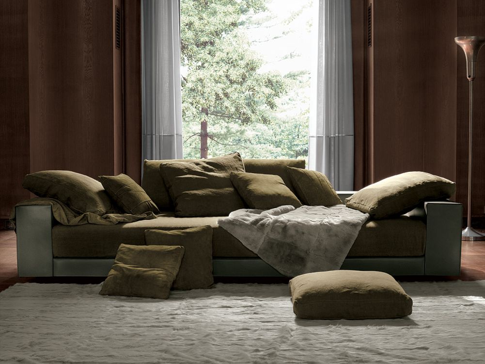 Sofa You and Me to elegancki, wysokoprofilowy mebel o prostych, wyrafinowanych liniach. Głębokość siedziska zachęca do relaksu i komfortowego wypoczynku. Duża forma i efekt wizualny łagodzone są miękkością poduszek, tworząc idealną równowagę między designem a wygodą. Połączenie różnych materiałów dodaje sofie subtelnej, wysmakowanej ekstrawagancji.
