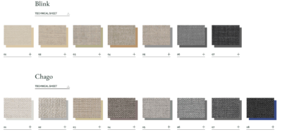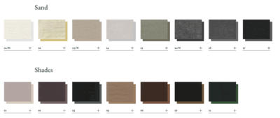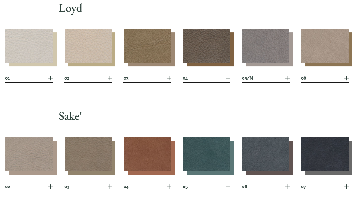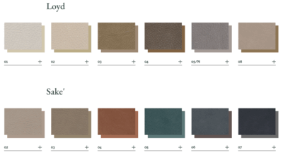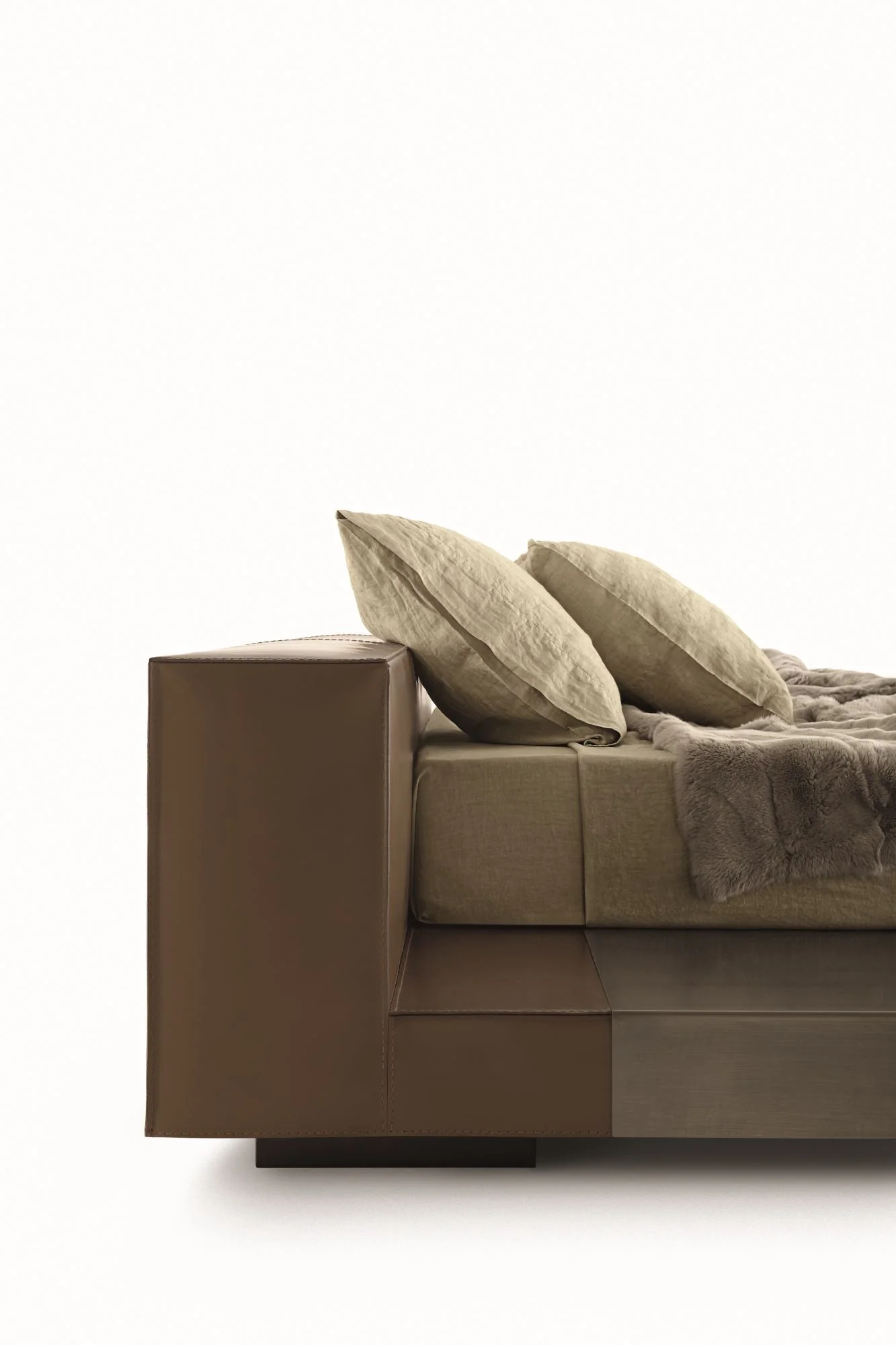 Łóżko dostępne jest z pokryciem z tkaniny, skóry naturalnej lub skóry typu hide „marcapunto” z przeszyciem, co pozwala dopasować wygląd do indywidualnego stylu wnętrza.