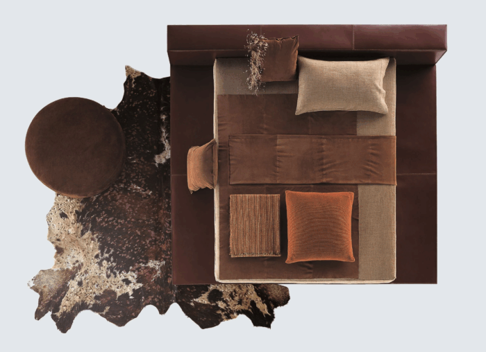 Łóżko dostępne jest w różnych wersjach tkanin, skór naturalnych i skór typu hide, co pozwala perfekcyjnie dopasować je do wnętrza.