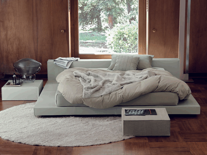 Jeśli pokrycie wykonane jest z tkaniny lub skóry naturalnej, górna część łóżka będzie całkowicie przykryta, a materac można ustawić według własnego wyboru: po prawej, lewej, na środku lub jako podwójny materac pojedynczy.